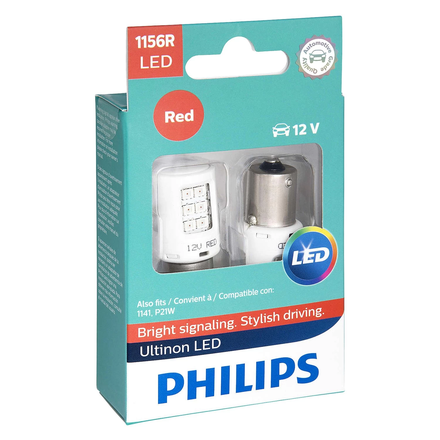 Ultinon LED Bulbs (1156) (1156RLED) by Philips®. 1 Pair, red color bulbs, 12V. Replace your standard car bulbs with long lasting Philips Ultinon LED bulbs. They are a direct replacement for incandescent bulbs and are resistant to extreme heat and high vibrations. One look at their top-of-the-line design tells you these bulbs are like nothing you have seen before – Ultinon LED bulbs have been engineered to provide outstanding performance and ensure great longevity. Plus, they are backed by a 12-year limited warranty.