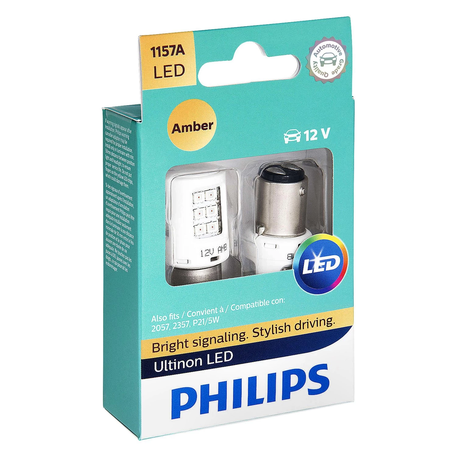 Ultinon LED Bulbs (1157) (1157ALED) by Philips®. 1 Pair, amber color bulbs, 2W, 12V. Replace your standard car bulbs with long lasting Philips Ultinon LED bulbs. They are a direct replacement for incandescent bulbs and are resistant to extreme heat and high vibrations. One look at their top-of-the-line design tells you these bulbs are like nothing you have seen before – Ultinon LED bulbs have been engineered to provide outstanding performance and ensure great longevity. Plus, they are backed by a 12-year limited warranty.