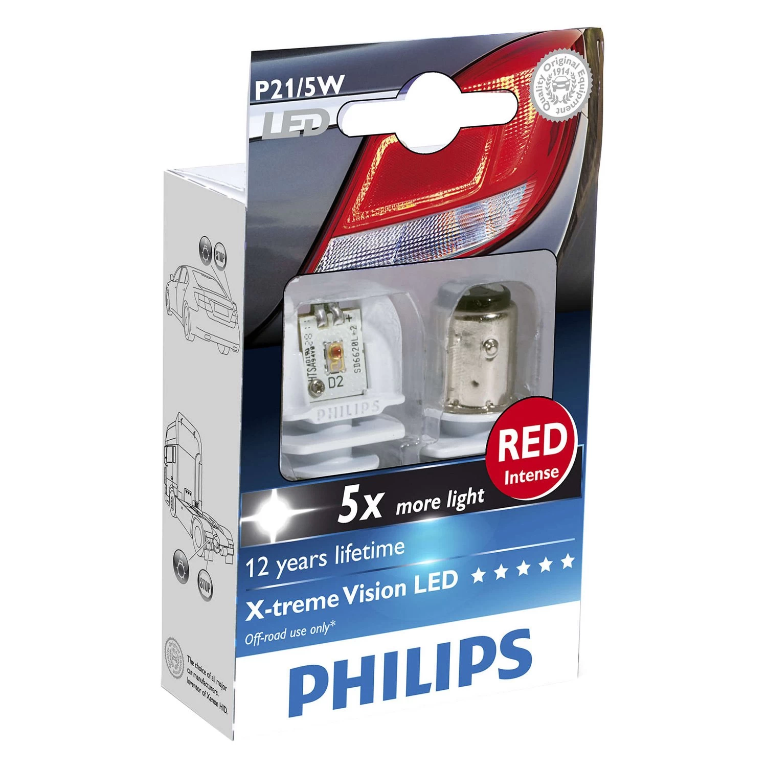 X-tremeVision LED Bulbs (1157) (12899RX2) by Philips®. 1 Pair, 6000K. Red color bulb. X-tremeVision LED bulbs are made with innovative technology to deliver an extremely bright white 6000K light. Designed with precision in mind, they’ll perfectly replace your factory incandescent bulbs. With their solid design and rigid construction, these bulbs are the ones you can rely on. They will serve you efficiently for 12 years to come.