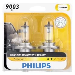 Standard Replacement Bulbs (9003) (9003B2) by Philips®, 1 Pair, 3000K. Engineered using modern manufacturing technologies, these Standard bulbs provide optimal visibility and offer excellent value. They feature the same high OEM quality as factory bulbs and ensure dependable and efficient operation for decades to come. So, if your factory bulbs do not perform the way they should and you do not want to endanger your safety, look no further. These superior Philips bulbs will meet your replacement needs.