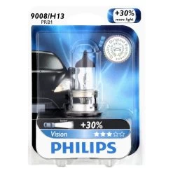 Universal 9008 Vision Replacement Bulb by Philips®, 1 Bulb. Designed to enhance illumination of the road and improve safety while driving, these top-of-the-line Vision bulbs are the ultimate choice for drivers worldwide. They produce powerful, stable, and accurate light beam with maximum output. Backed by excellent quality and overwhelming performance, these Philips bulbs will meet your highest expectations for reliability and efficiency.